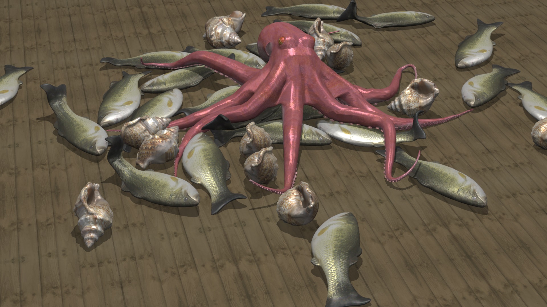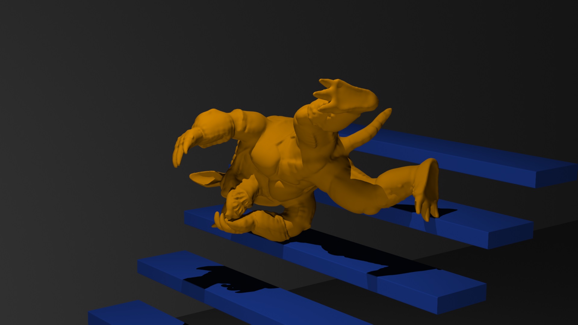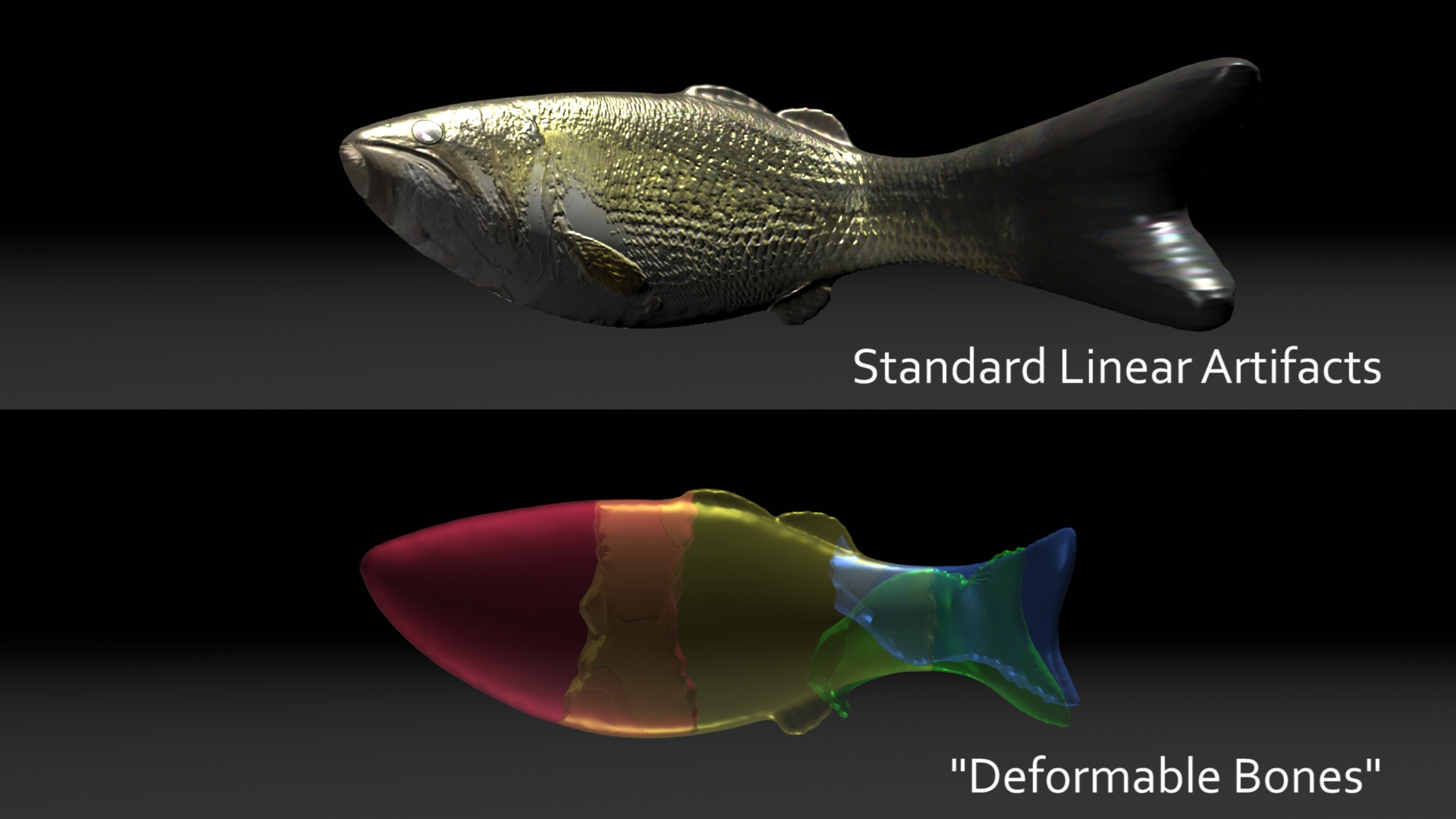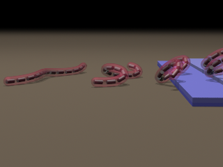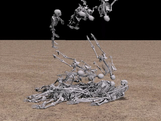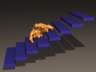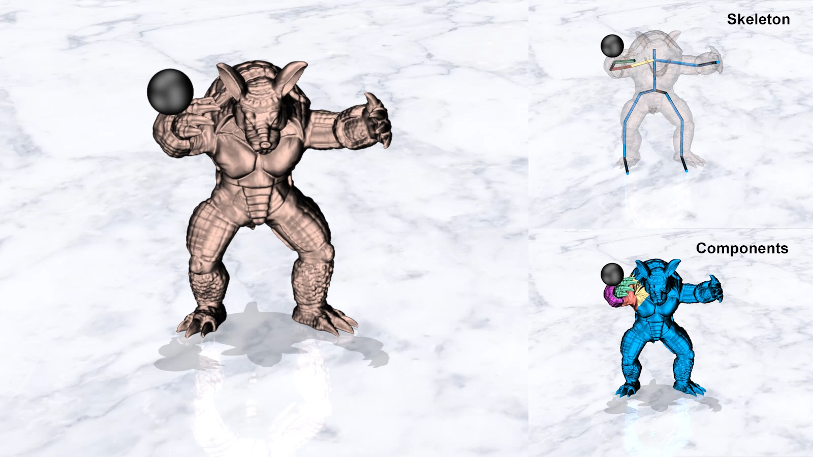 Simulating virtual soft bodied creatures with actuated internal rigid skeletal structures (with Tamar Shinar and Craig Schroeder).