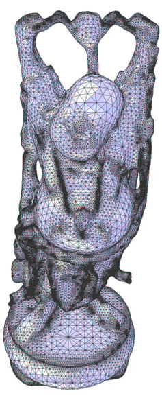 Animations of thin shells with non-flat rest angles (with Robert Bridson). The hollow Buddha on the left uses a weak bending model