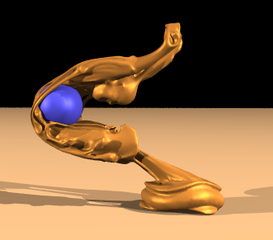 and collapses similar to a deflated balloon. In the animation on the right, this is compared to a Buddha with stronger bending forces