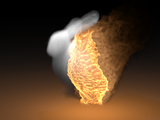 Melting and burning Lagrangian based solids into Eulerian based fluids (with Frank Losasso, Geoffrey Irving and Eran Guendelman).