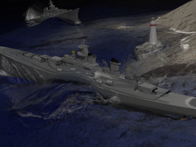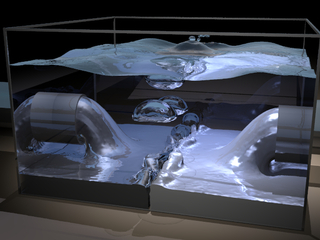 Mixing fully 3D water with 2D height field techniques (with Geoffrey Irving, Eran Guendelman and Frank Losasso).