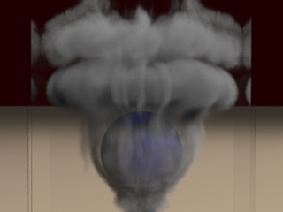 Fluid simulations using a Lagrangian vortex particle method hybridized with an Eulerian grid based solver (with Andrew Selle and Nick Rasmussen).